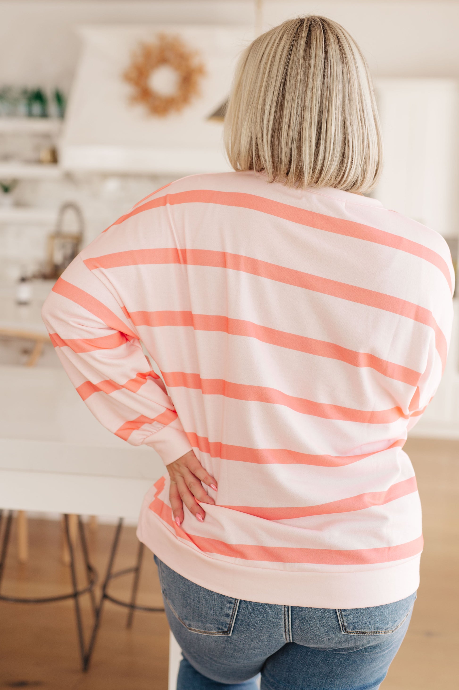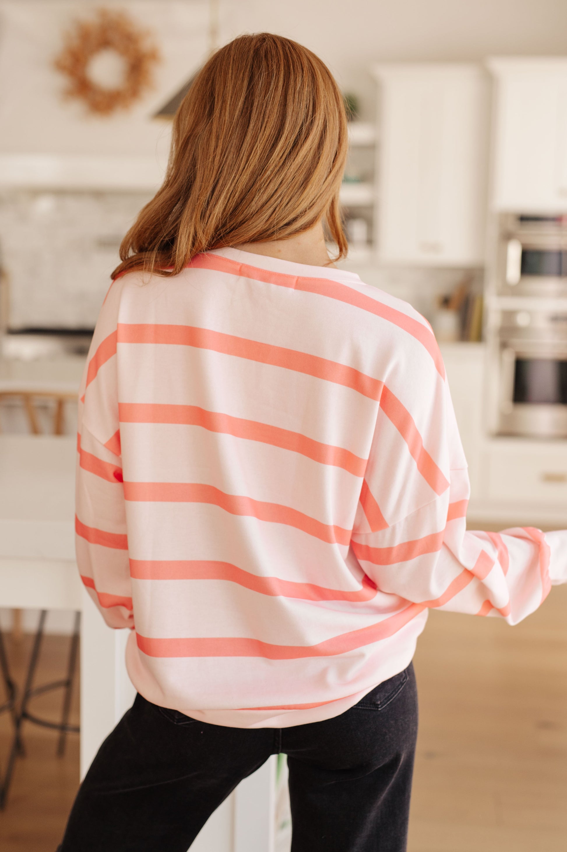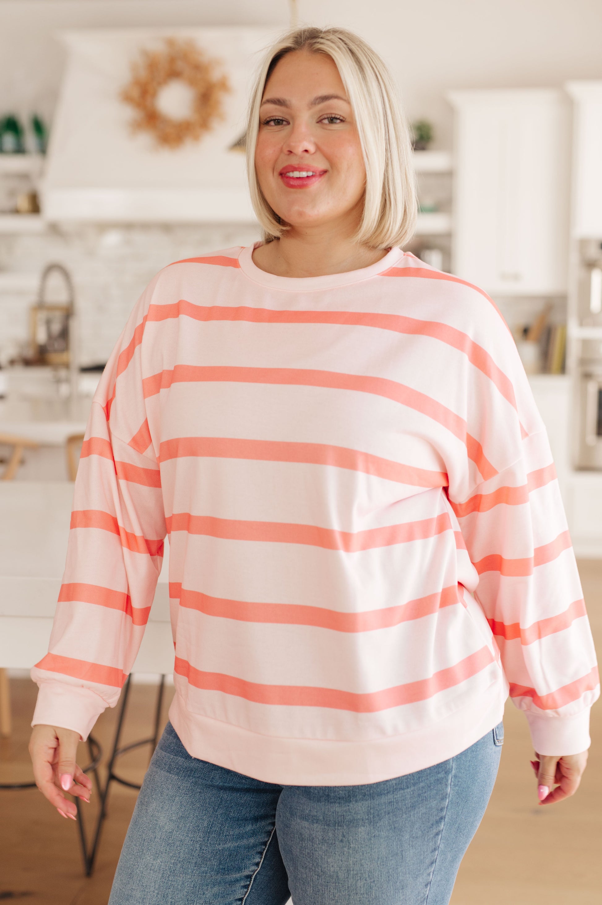 Treat yourself to comfort and style in this Here for the Stripes Long Sleeve Top. Featuring french terry fabric, a classic crew neckline, and dropped shoulders, you'll be sure to look and feel great. The color blocked tonal stripes add a stylish touch to any outfit.
