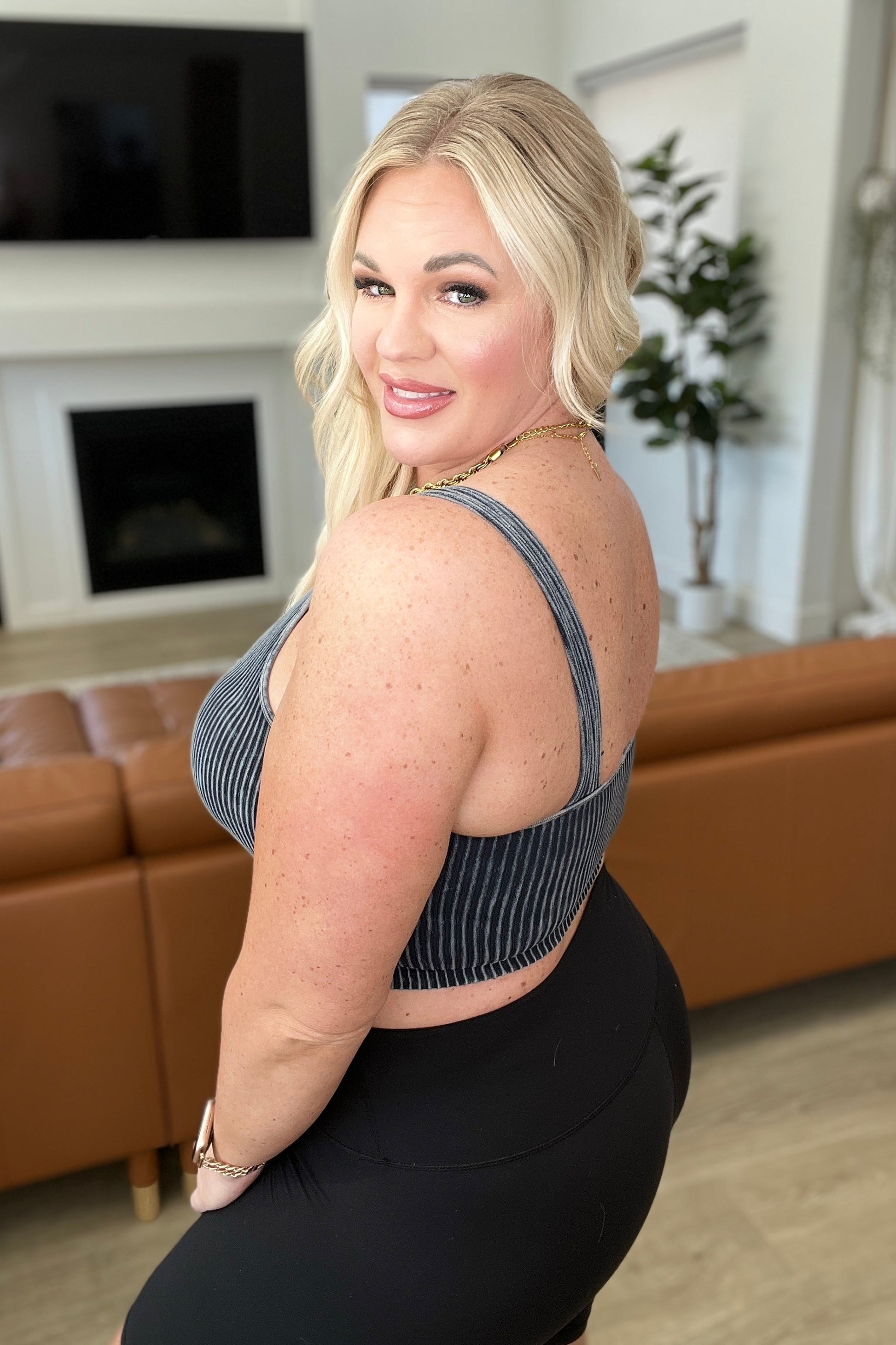 Elevate your style with our Mineral Washed Padded Cropped Tank! This sleeveless tank features a ribbed design and high stretch fabric for a flattering fit. Plus, it comes with removable pads in a shelf liner for customizable comfort. The ash black mineral wash adds a touch of edginess to any outfit.