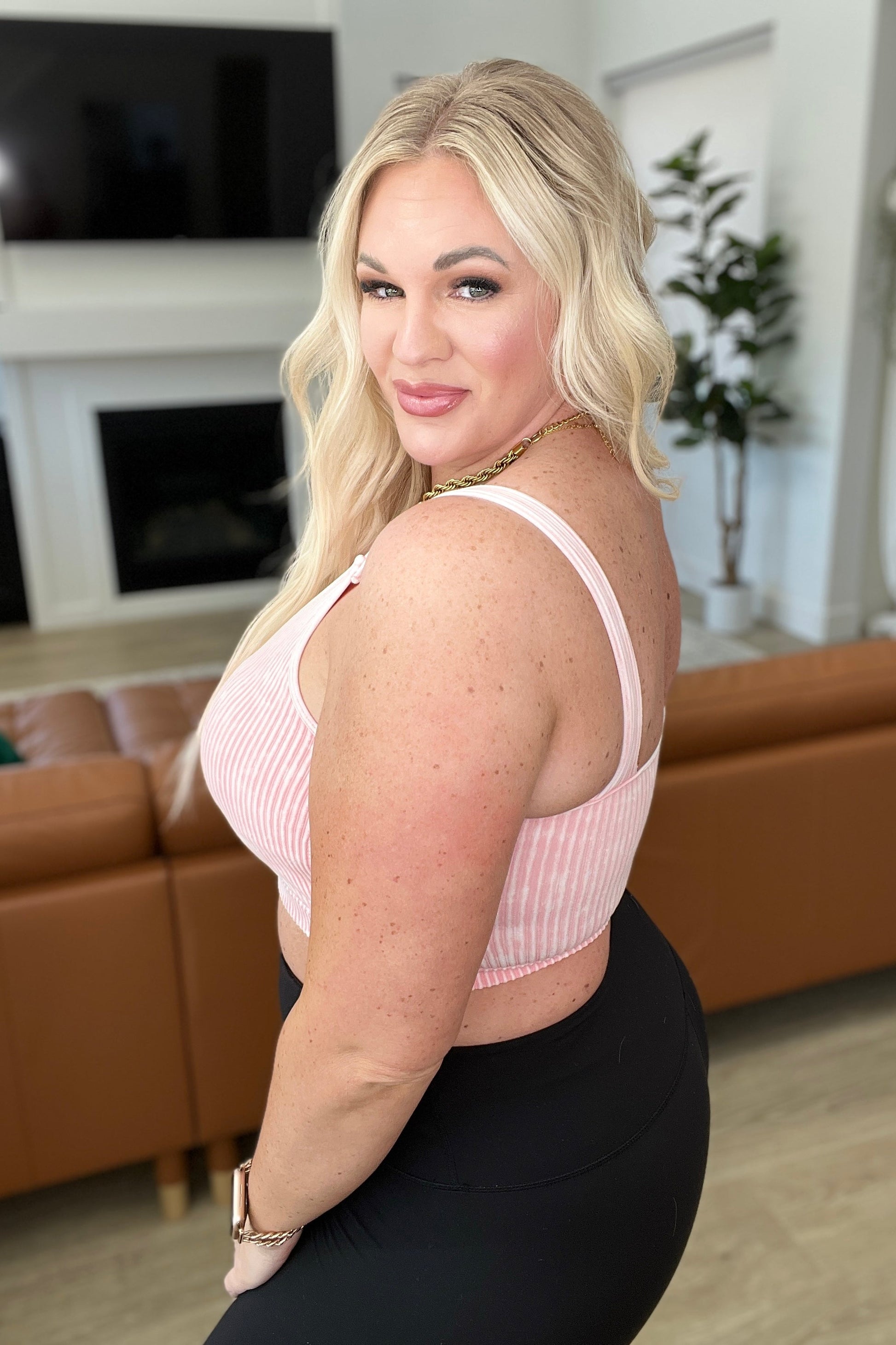 Mineral Washed Padded Cropped Tank in Dusty Pink
