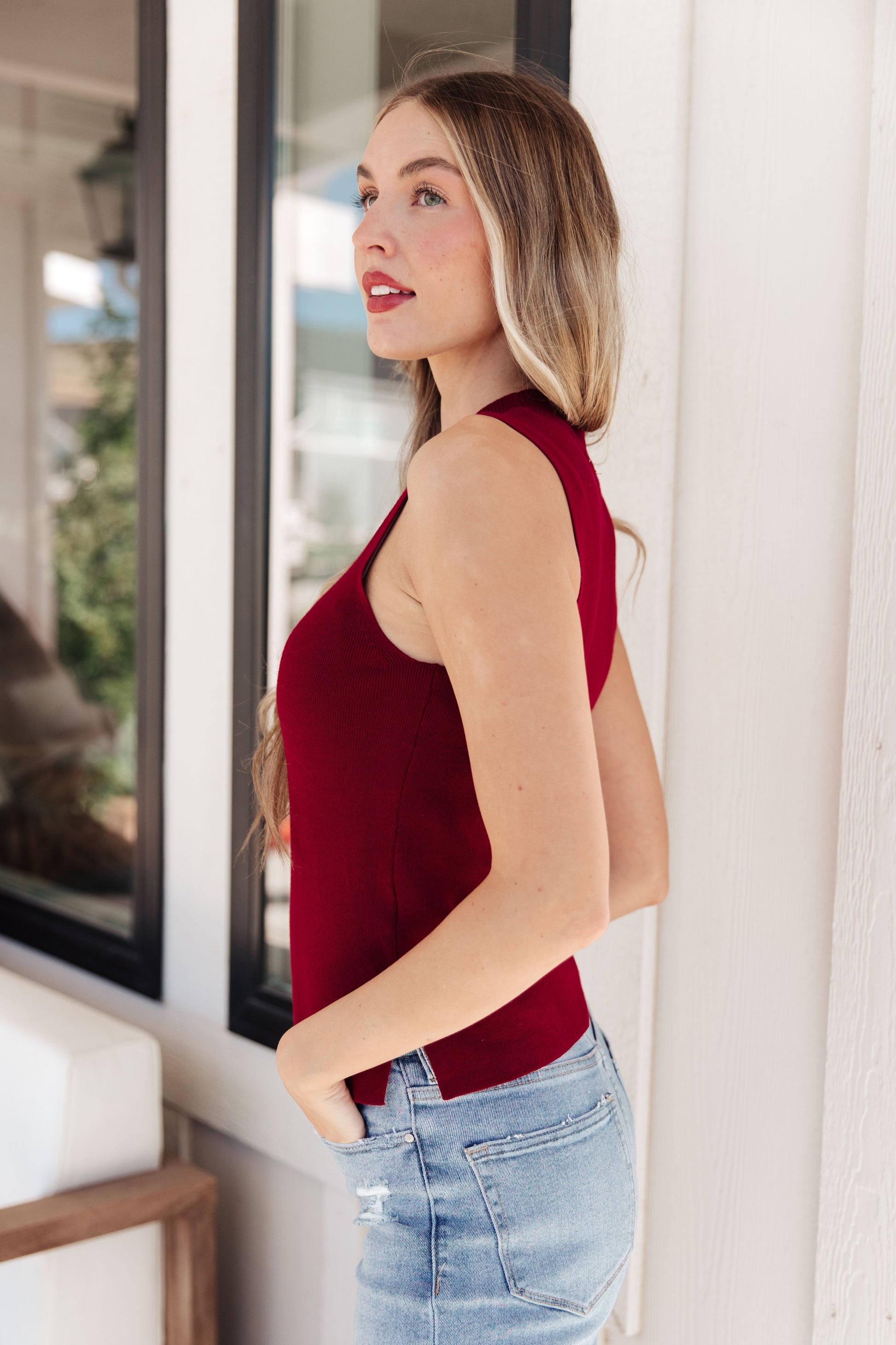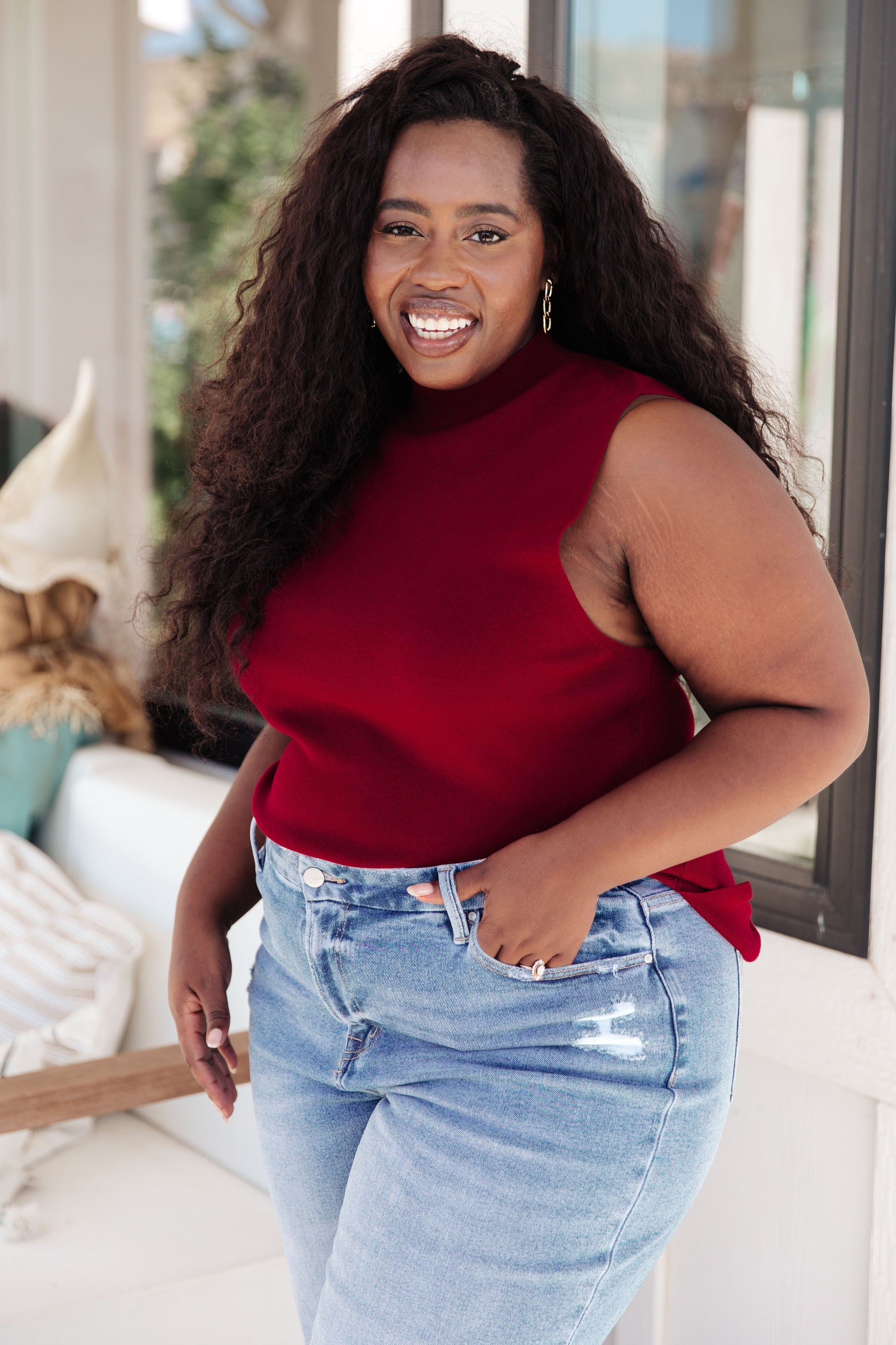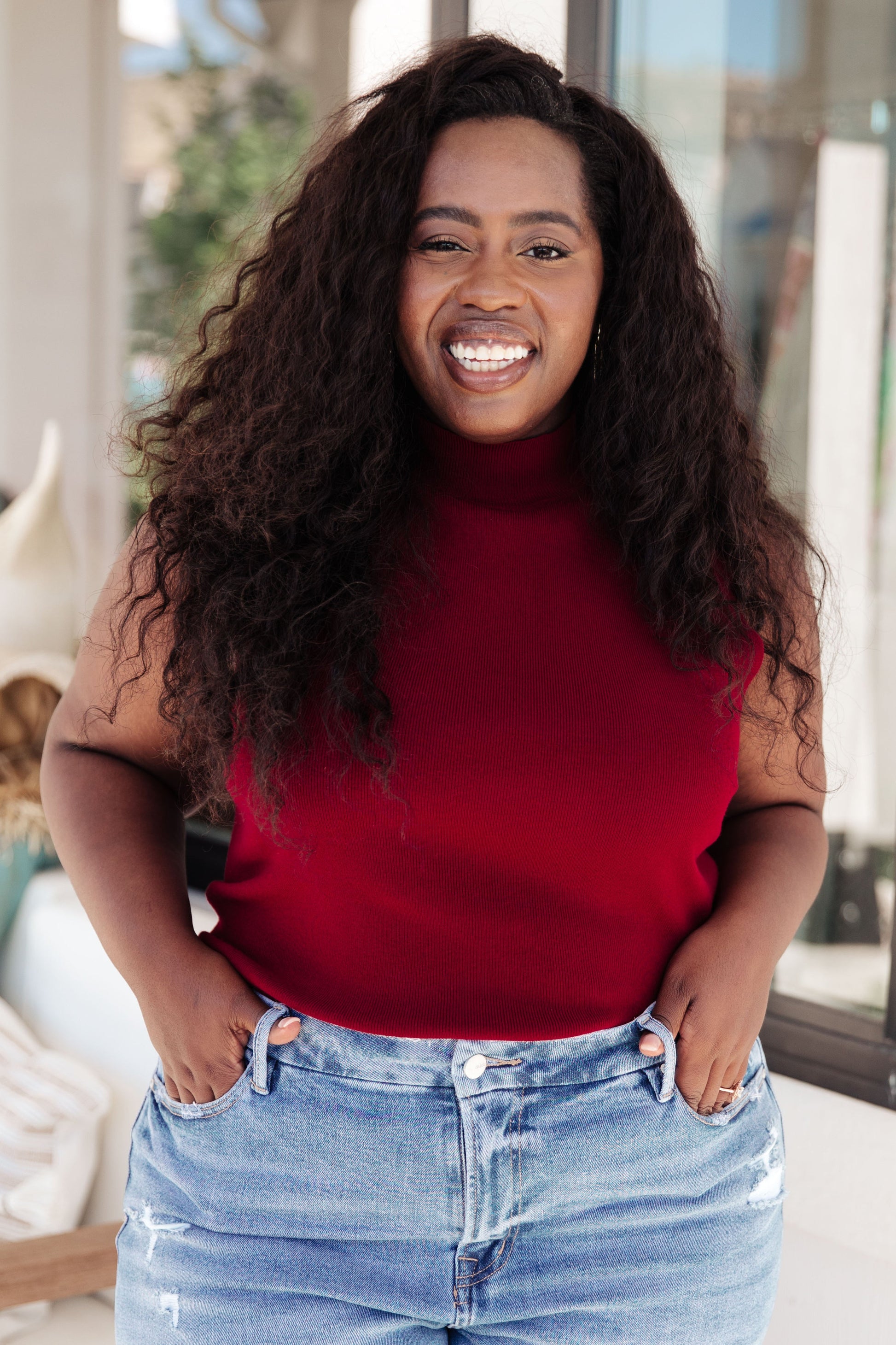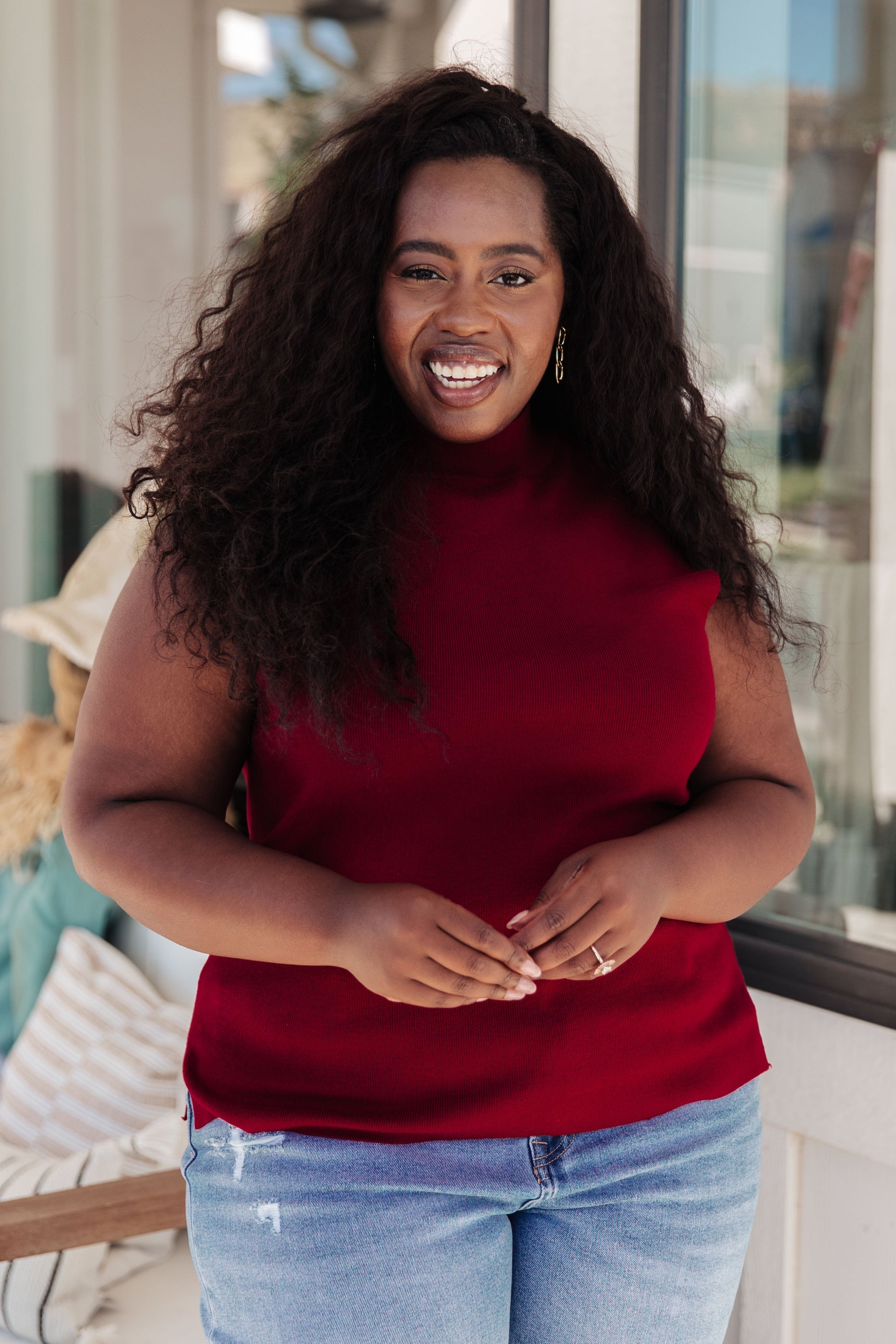 This No Excuses Mock neck Tank is sure to become a staple in your wardrobe. Featuring a cozy sweater knit fabric, a mock neckline, and a slim fit, you'll look stylish and feel comfortable all day long.