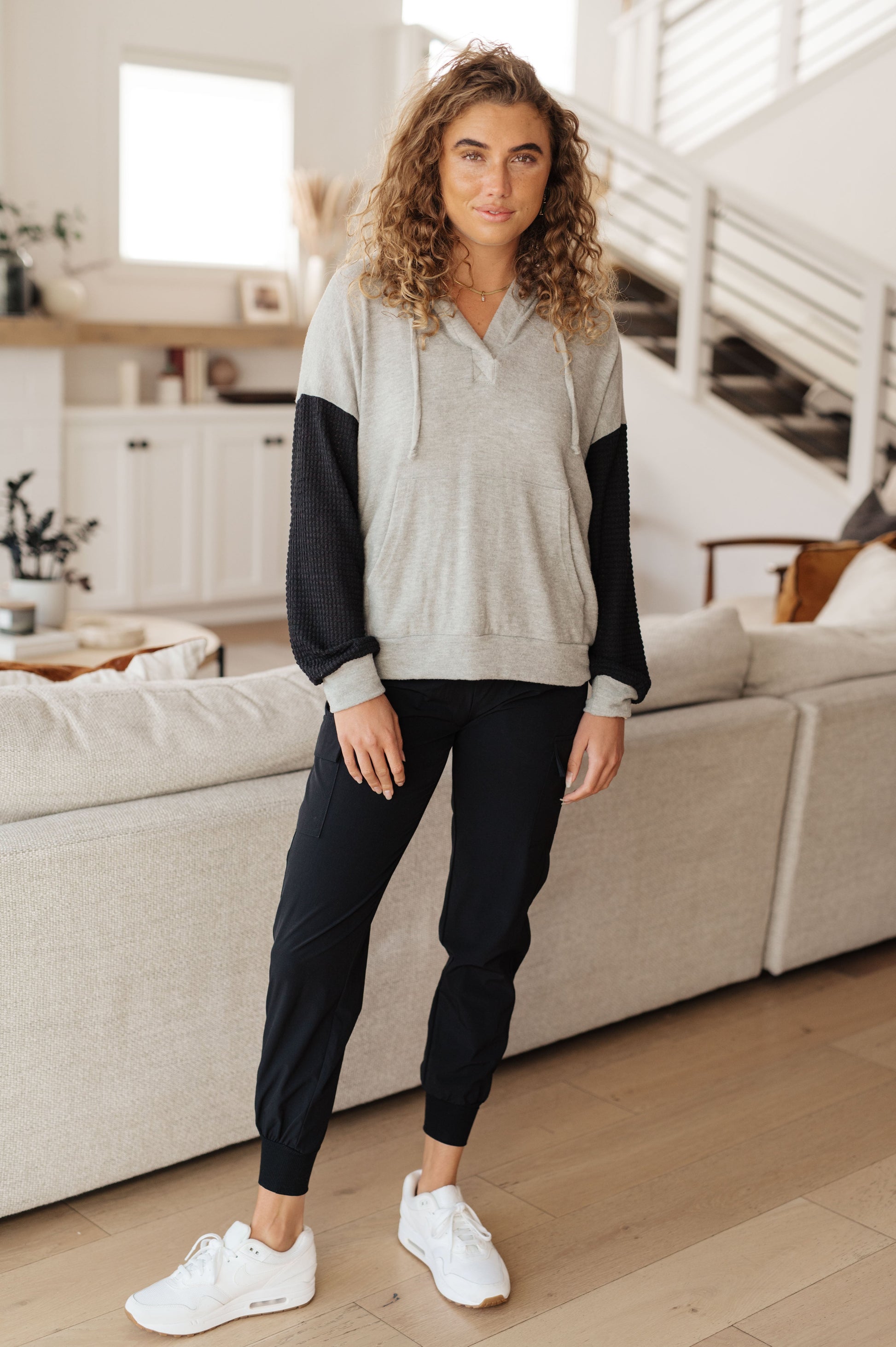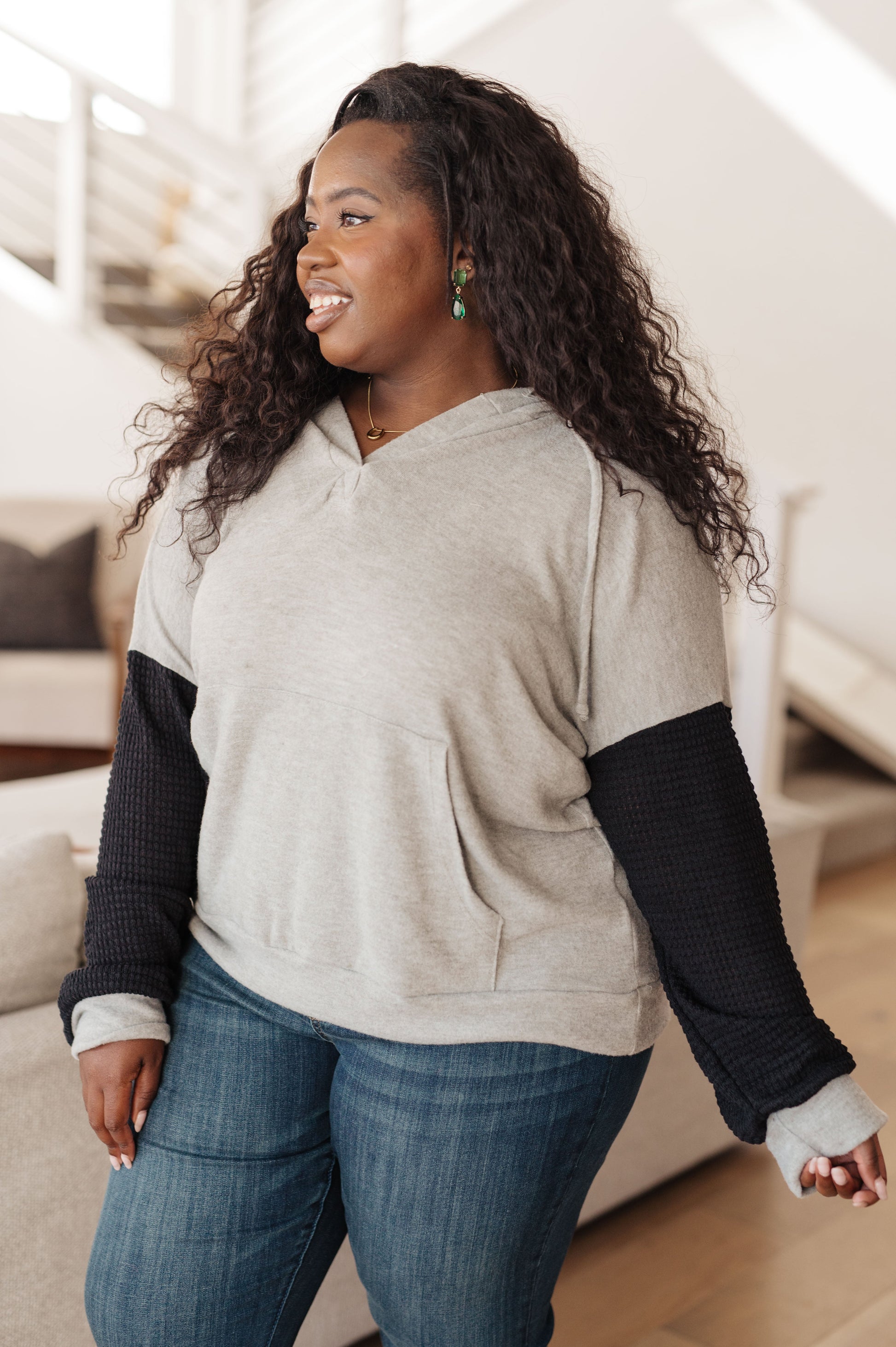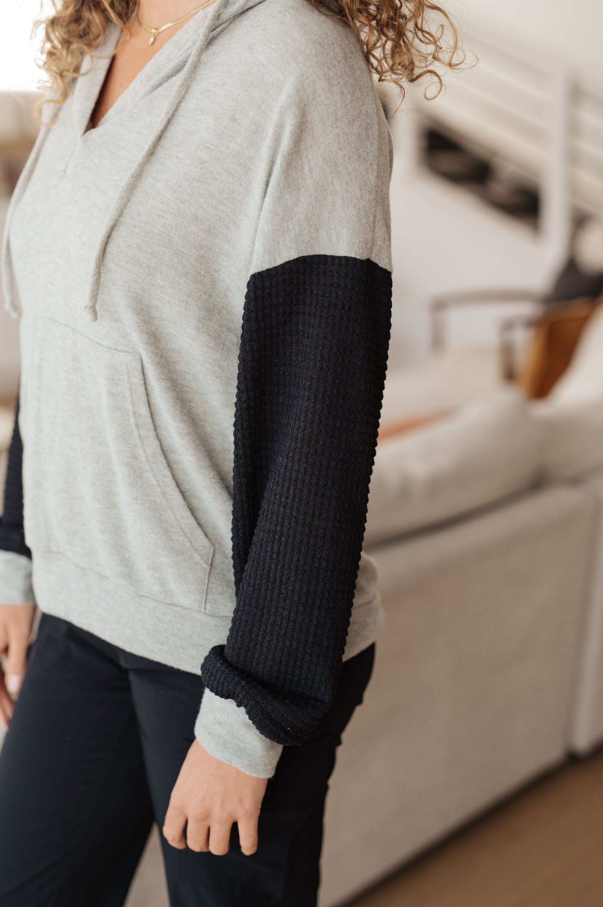 Stay cozy and stylish this season with our Pull Up Your Sleeves Color Block Hoodie. Crafted with a brushed Hacci knit fabric, waffle knit sleeves, a kangaroo pocket, and a hooded v-neckline, this hoodie will keep you warm and cozy all season long.